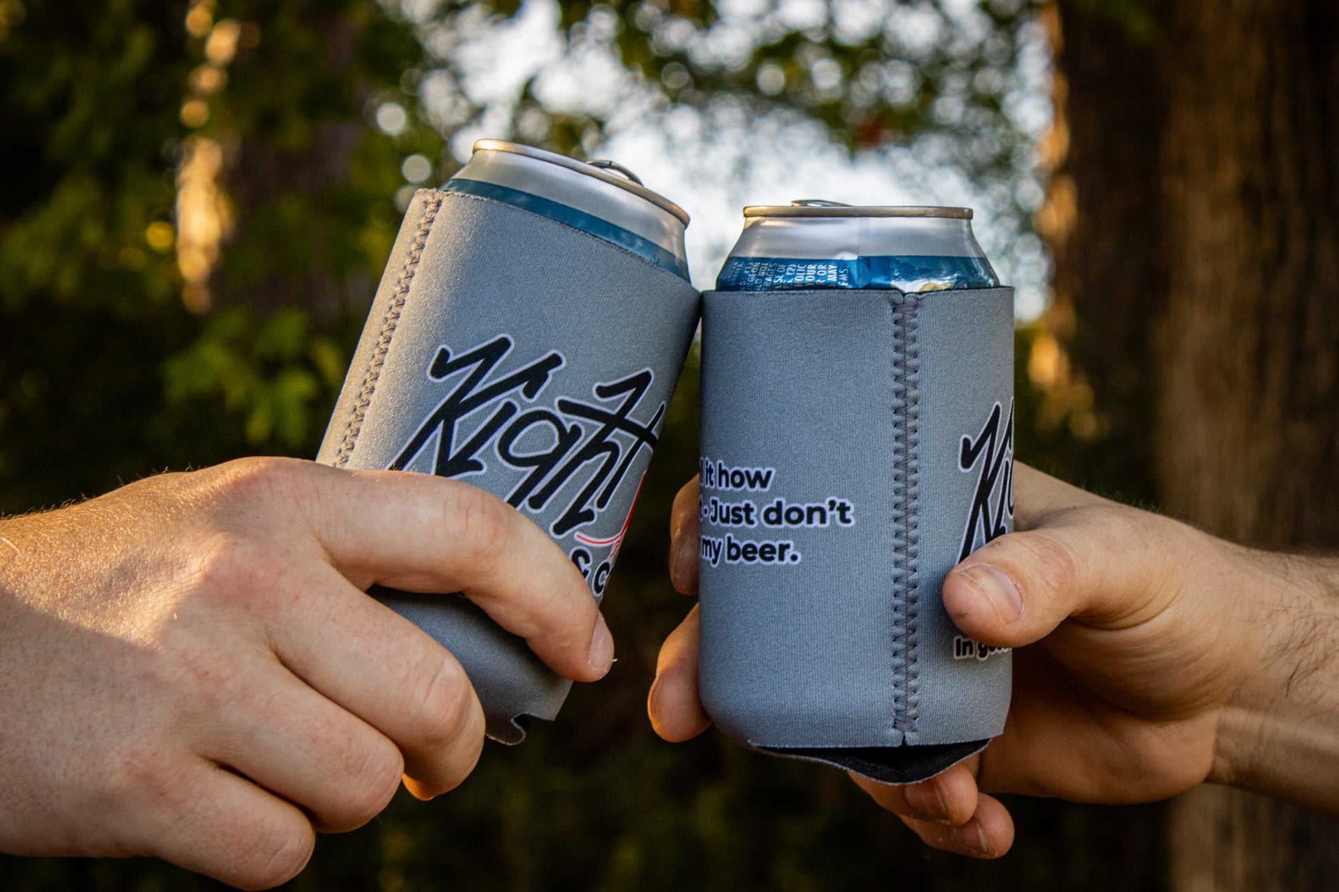 Keep it cold, keep it light, spell it how like you like. Our classic Kight & Co. logo on one side and a reminder on the other. Perfect for any cold beer!